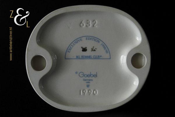 Dit Hummel beeldje model ich spiel gern bal / at play is gemaakt door de Goebel Porseleinfabriek in Oeslau Rödental West-Duitsland. Het porseleinen Hummel beeldje draagt aan de onderzijde in reliëf het modelnummer 632, het merk van de M.I. Hummel club exclusive edition 1998/99 en het handelsmerk TM7 dat tussen 1991 en 1999 in gebruik was, met daaronder in reliëf het jaar 1990. Tevens heeft het Hummel beeldje de originele sticker ich spiel gern bal / at play en is aan de bovenkant van de voet in reliëf gesigneerd met M.I. Hummel. Het Hummel beeldje naar het ontwerp van zuster Maria Innocentia Hummel is in 1990 gecreëerd door beeldhouwer Helmut Fischer. Het beeldje weegt 143 gram en is 8.5 cm hoog.