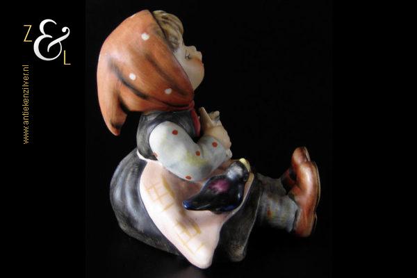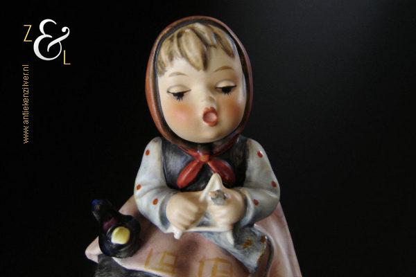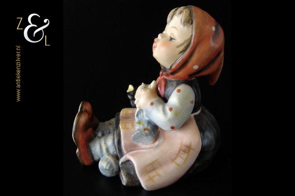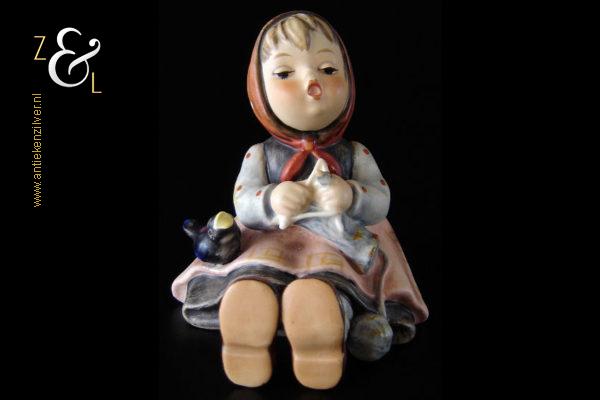 Dit Hummel beeldje model strickliesl / happy pastime is gemaakt door de Goebel Porseleinfabriek in Oeslau Rödental West-Duitsland. Het porseleinen Hummel beeldje draagt aan de onderzijde in reliëf het modelnummer 69 en het handelsmerk TM3 dat tussen 1960 en 1972 in gebruik was. Tevens is het Hummel beeldje aan de achterzijde in reliëf gesigneerd met M.I. Hummel. Het Hummel beeldje is in 1938 gecreëerd door beeldhouwer Arthur Moeller naar het ontwerp van zuster Maria Innocentia Hummel. Het beeldje weegt 117 gram en is 8.5 cm hoog. Het beeldje heeft lichte sporen van craquelure.