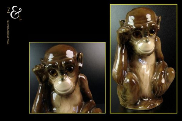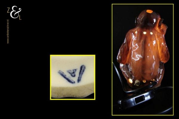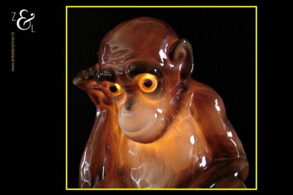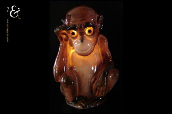 Dit parfumlampje* in de vorm van een aap is gemaakt door de Goebel Porseleinfabriek in Oeslau Rödental West-Duitsland. Het porseleinen lampje draagt aan de onderzijde in reliëf het modelnummer ET 68 en het handelsmerk TM3 dat tussen 1960 en 1972 in gebruik was. Het parfumlampje is 14 cm hoog en weegt 278 gram. Het parfumlampje is klaar voor gebruik, het reservoir voor de geparfumeerde olie is heel, (bij veel parfumlampjes is door verkeerd gebruik het reservoir gebarsten dit kwam doordat men het lampje bijvulde terwijl het nog heet was, door het hoge temperatuurverschil barstte daarom het reservoir) en uit veiligheidsoverweging is het elektrische gedeelte nagekeken en het oude snoer en lampje vervangen door een nieuw lampje en een twee meter lang snoer met schakelaar.