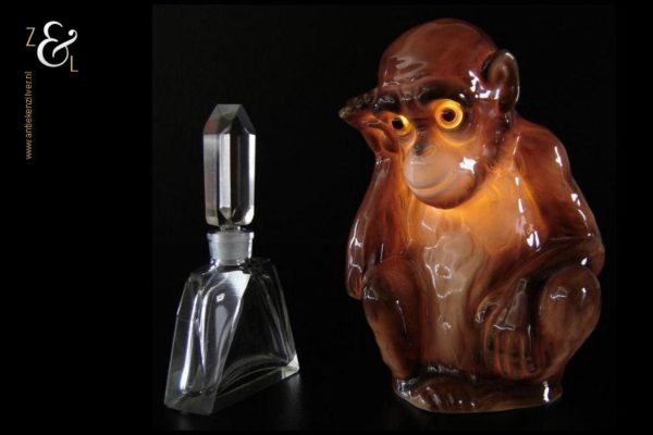 *parfumlampje: een porseleinen beeldje waarin een opening zit dat toegang geeft tot een reservoir dat men kan vullen met een geparfumeerde olie. Als het parfumlampje wordt ingeschakeld wordt door de warmte van de gloeilamp de parfumolie verwarmd, waardoor het verdampt en er een aangename geur ontstaat. Er bestaat een grote verscheidenheid in parfumlampjes, waarbij dierfiguren het meest voorkomen. De lampjes zijn tussen 1910 en 1980 gefabriceerd, door bijvoorbeeld Wagner & Apel, Volkstedt, Rosenthal en Goebel, maar er zijn tevens tientallen andere fabrikanten die deze lampjes gemaakt hebben. Parfumlampjes in de vorm van een aap zijn een zéér begeerd verzamelobject!