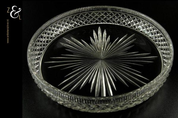 Deze antieke kristallen Hollandse schaal stamt uit het einde van de 19e eeuw (rond 1880). De schaal is mondgeblazen en handgeslepen. De zijkant is uitgevoerd in ruitslijpsel en heeft een verticaal slijpsel langs de rand. De bodem heeft een geslepen ster. Het gewicht van deze schaal is 1693 gram is 5 cm hoog en heeft een diameter van 27.5 cm.