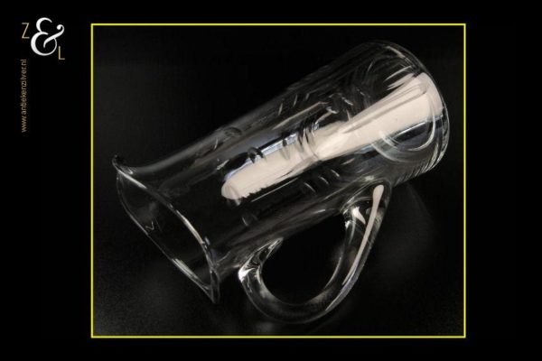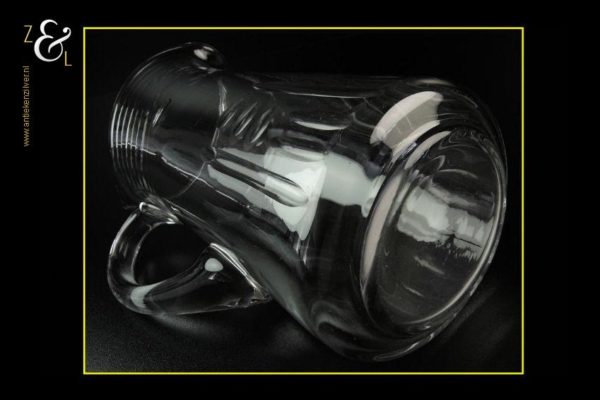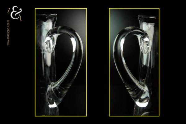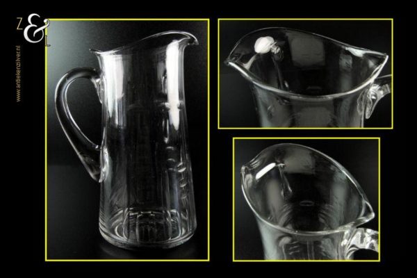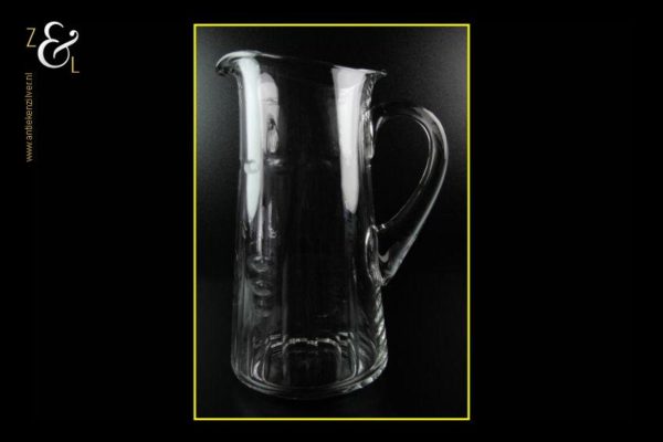 Deze in een sierlijke vorm olijfgeslepen kristallen schenkkan / waterkan is in de tweede helft van de 19e eeuw in Nederland gemaakt. De mondgeblazen, handgeslepen en gepolijste schenkkan / waterkan weegt 944 gram en heeft een diameter van 12.5 cm is 25 cm hoog en heeft een inhoud van 1.7 liter.