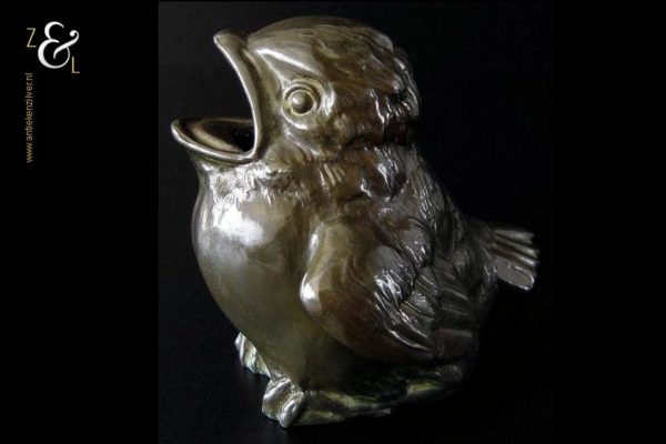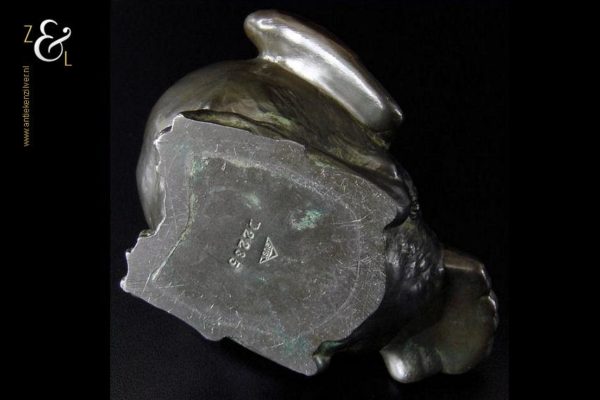 Dit Art Deco beeld / plastiek in de vorm van een vogel is gemaakt en ontworpen door Ib Just Andersen het is gesigneerd met Just in een driehoek en draagt het nummer D2235. Het beeld / plastiek is gegoten in het door hem uitgevonden ‘Disko-metaal’ het weegt 771 gram is 11.5 cm lang 8.5 cm breed en 10.7 cm hoog. Beelden / plastieken van Ib Just Andersen in de vorm van een vogel komen weinig voor en zijn vrij zeldzaam.