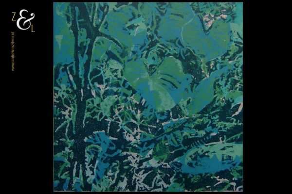 Deze monoprint is in 1990 gemaakt door Jaap Velserboer (werkzaam te Beverwijk). De monoprint is linksonder gesigneerd met Jaap Velserboer en rechtsonder is het kunstwerk gedateerd met 1/6 ’90. De afmeting van deze monoprint is 70 cm bij 70 cm.