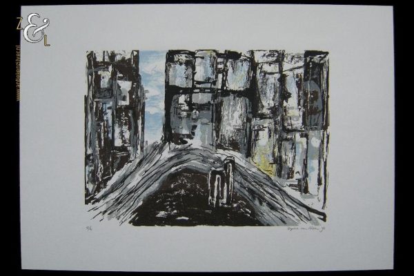Deze zeefdruk die deel uitmaakte van de portefeuille “DE STRAAT” werd op de grafische werkplaatsen van de Faculteit beeldende kunsten en Vormgeving van de Hogeschool voor de Kunsten Utrecht uitgevoerd en eigenhandig gedrukt in gelimiteerde oplage van zestig genummerde exemplaren.