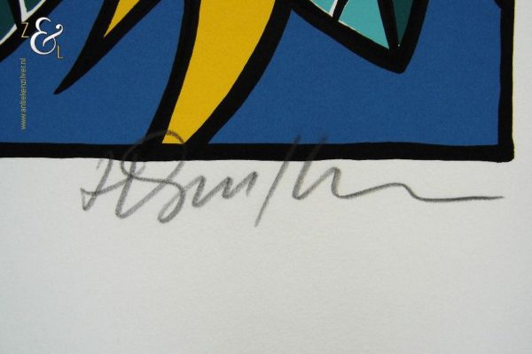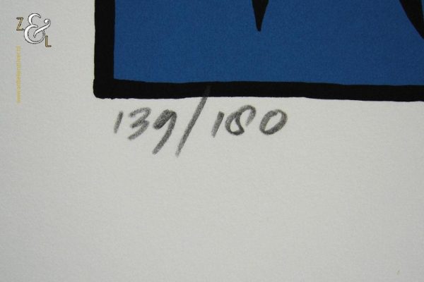 Deze zeefdruk met de titel “Rose Red” is gemaakt door Henk Schiffmacher. De zeefdruk is rechtsonder in potlood gesigneerd H. Schiffmacher en linksonder staat de oplage 139/180. De zeefdruk is aan de buitenzijde gemeten 73.9 cm lang bij 54.8 cm breed en de druk zelf is 54 cm lang bij 40 cm breed. De zeefdruk heeft een vlek in de linkerbovenhoek.