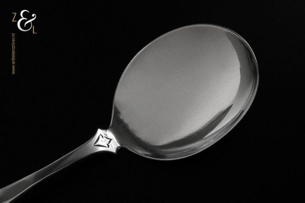 Deze ijsdienschep / ijsschep is gemaakt in Amsterdam door Theodorus Lambertus & Pierre Louis Uriot (Firma T.L. Uriot & Zoon) (meesterteken TU boven Z3 in vierkant) in het jaar 1880 (jaarletter V). De zilveren ijsdienschep / ijsschep met elegant gegraveerde steel weegt 40 gram en is 19 cm lang. Het schepgedeelte is 7 cm lang bij 5.5 cm breed.