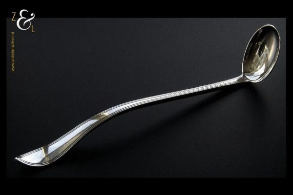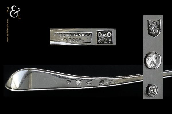 Jamlepel / confiturenlepel gemaakt in Amsterdam door D. van Outvorst Jr. (Firma D. Outvorst & Zoon) (meesterteken: DvO boven & Zn. in vierkant) in het jaar 1913 (jaarletter D). Deze eerste gehalte zilveren in model puntfilet uitgevoerde jamlepel / confiturenlepel weegt 30 gram en is 16 cm lang. De bak meet 4 cm lang bij 2.8 cm breed. Tevens draagt deze jamlepel / confiturenlepel het winkeliersmerk van A. Bonebakker & Zoon, deze firma is sinds 1792 bekend vanwege de verkoop van zilveren voorwerpen van zéér hoge kwaliteit.