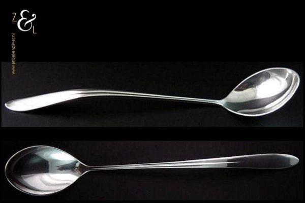Jamlepel / confiturenlepel gemaakt in Zeist door Gerritsen & van Kempen (meesterteken V.K. in G) in het jaar 1939 (jaarletter E). De door Gustav Beran ontworpen jamlepel / confiturenlepel is uitgevoerd in model 400 en kwam in productie in het jaar 1935. De zilveren lepel weegt 25 gram en is 16.8 cm lang.