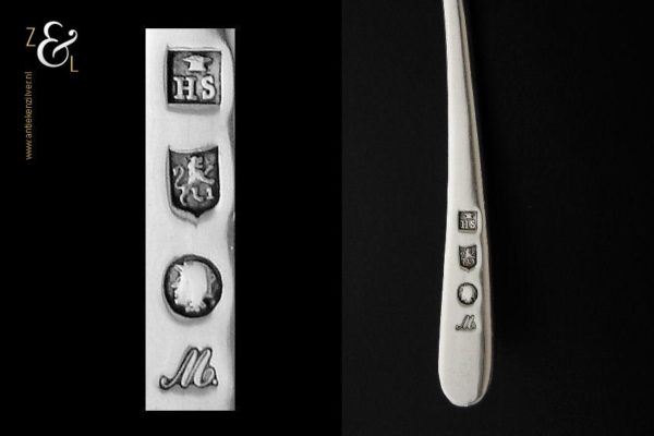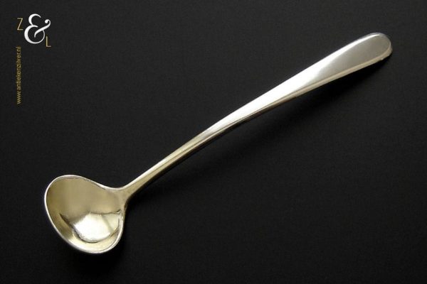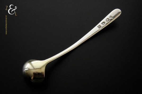 Mosterdlepel gemaakt in Amsterdam door Hendrik Smits (meesterteken HS onder aambeeld in vierkant) in het jaar 1821 (jaarletter M). Deze zilveren Empire mosterdlepel waarvan de bak en een gedeelte van de steel verguld is heeft een glad handvat. De mosterdlepel weegt 9 gram en is 9.9 cm lang. De bak heeft een diameter van 2.1 cm.