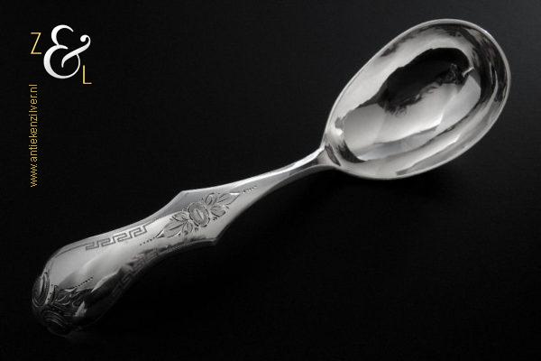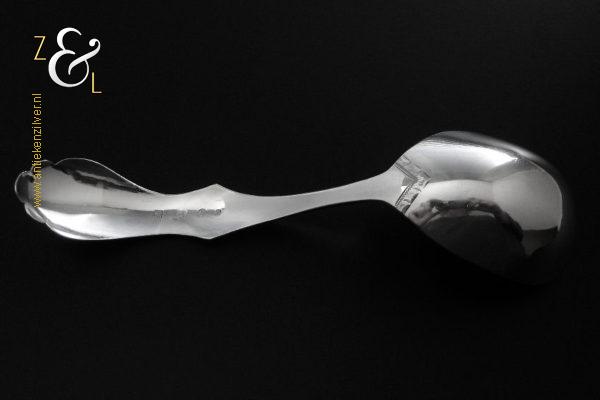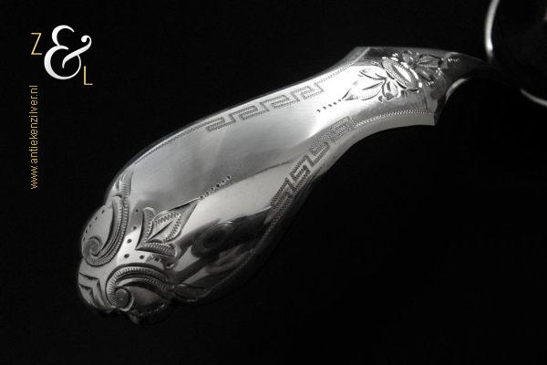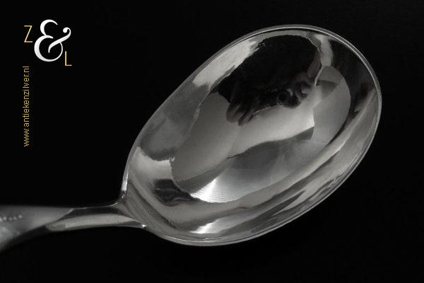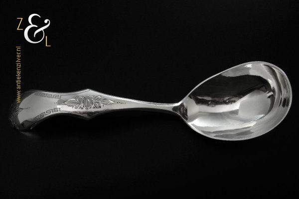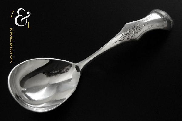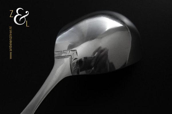 Deze sauslepel is gemaakt in Woudsend / Sneek door Johannes Schijfsma Jz. (meesterteken JS boven 189 in vierkant) in het jaar 1882 (jaarletter X). De zilveren Neostijl sauslepel heeft een steel die fijntjes gegraveerd is met Meander- en bloemmotieven. Tevens zit aan de achterzijde waar de steel overgaat in de lepelbak een kleine gravering. De sauslepel weegt 38 gram en is 16.3 cm lang. De lepelbak is 6.5 cm lang bij 4.4 cm breed.