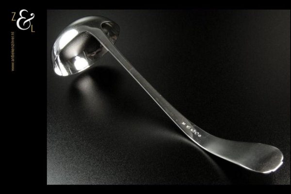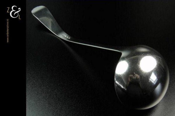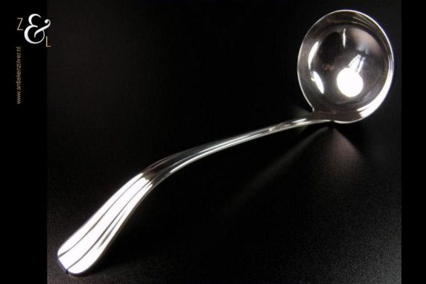 Deze soepdienlepel ontworpen door Christa Ehrlich (de lepel draagt tevens haar eigen meesterteken CE in een vierkant) is gemaakt in Voorschoten door de Zilverfabriek Voorschoten N.V. (meesterteken V boven liggend maantje in achthoek) in het jaar 1947 (jaarletter M). Deze zware en in model 1064 uitgevoerde zilveren soepdienlepel weegt 209 gram en is 29 cm lang. De lepelbak heeft een diameter van 9 cm.