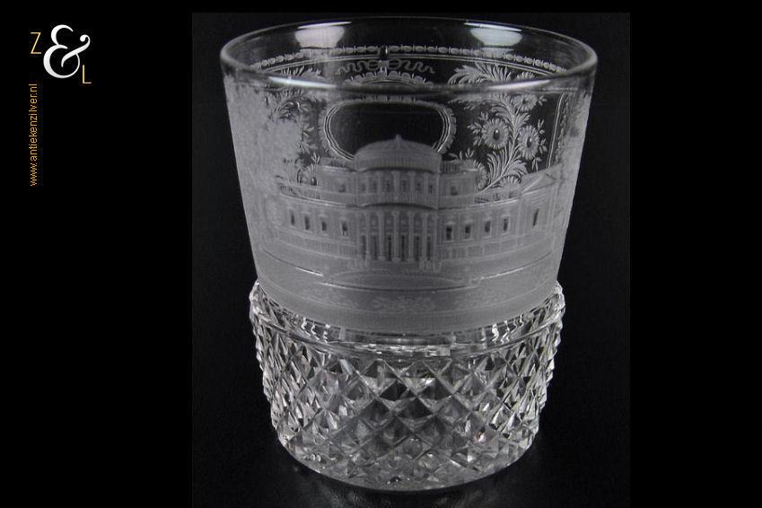 Dit glas is afgebeeld in “Catalogus No 4 Glasfabriek “Leerdam” voorheen Jeekel Mijnssen & Co. Leerdam Holland” uit 1910 en wordt aangeduid als geslepen roemer model: Spitse 2 knops.