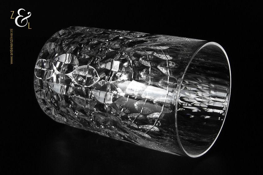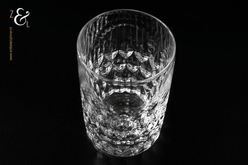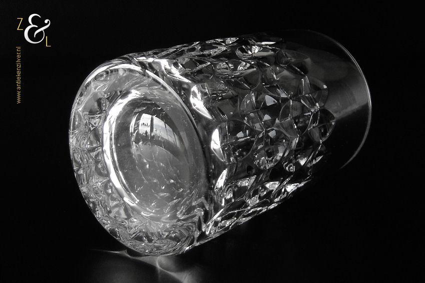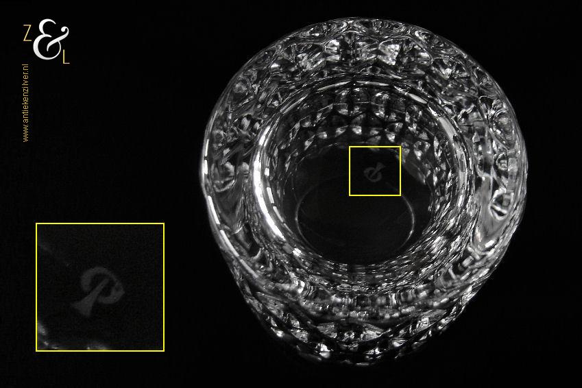 Dit kristallen whiskey- whiskyglas model ‘Granada’ is in de zestiger jaren ontworpen door Horst Tüselmann en gemaakt bij Peill & Putzler een glasblazerij in Duitsland, Düren, Noord-Rijnland- Westfalen die van 1903 tot 2004 bestaan heeft. Het mondgeblazen glas weegt 257 gram is 9.9 cm hoog en heeft een diameter van 6 cm. Het glas is op de bodem gesigneerd met de ‘P’ van Peill & Putzler.