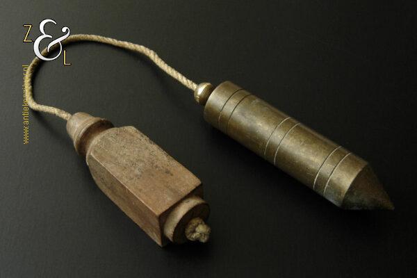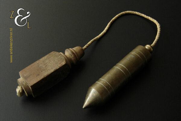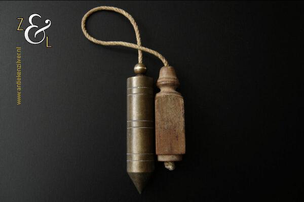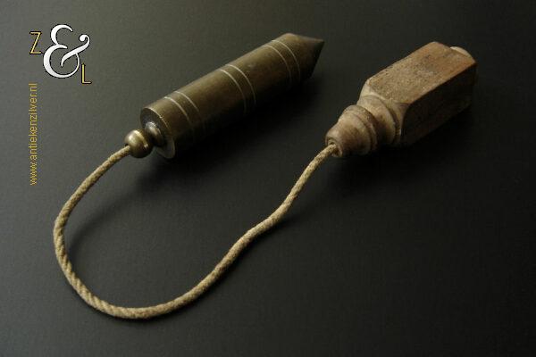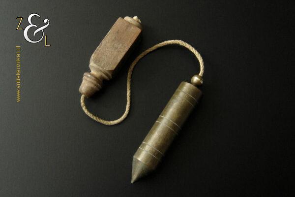 Dit schietlood, richtlood of paslood met houten klos is gemaakt in Nederland en stamt uit de tweede helft van de 20e eeuw (omstreeks de vijftiger jaren). Het schietlood is gemaakt van messing en heeft een cilindervorm met conische punt. Het schietlood weegt 422 gram heeft een diameter van 2.5 cm en is 12.2 cm lang.