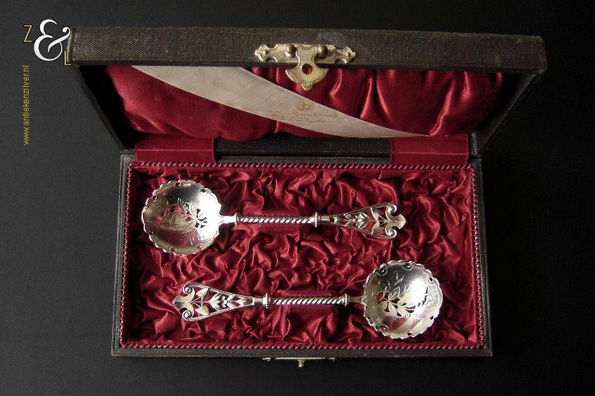 Deze 12 espressolepels / mokkalepels zijn gemaakt bij Magasin du Nord Kopenhagen Denemarken (meesterteken MdN onder een bijenkorf). Tevens gestempeld met het zilverkeur drie torens met daaronder het getal 53 bij vijf lepels en 54 bij zeven lepels duidend op de jaartallen 1953 en 1954 dit zijn de jaren waarin de lepels gemaakt zijn. De mooie stevige zilveren lepels zijn 9.1 cm lang en wegen samen 104 gram.