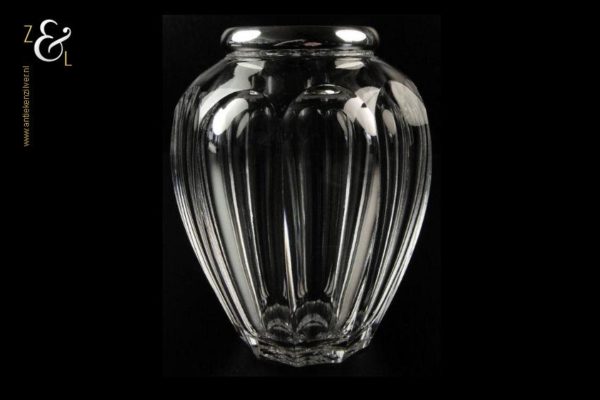 Dit lepelvaasje is gemaakt in Schwäbisch Gmünd Duitsland door de zilversmederij Gebrüder Deyhle (meesterteken staande leeuw) in de eerste helft van de 20e eeuw. Het in Art Deco stijl uitgevoerde kristallen gefacetteerde lepelvaasje heeft tien ribben en is voorzien van een zilveren montuur dat de keuren 925 STERLING met een staand leeuwtje draagt. Het lepelvaasje is 10.2 cm hoog heeft een diameter van 8 cm en weegt 332 gram.