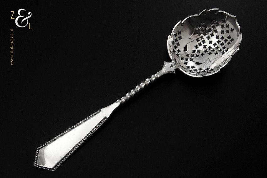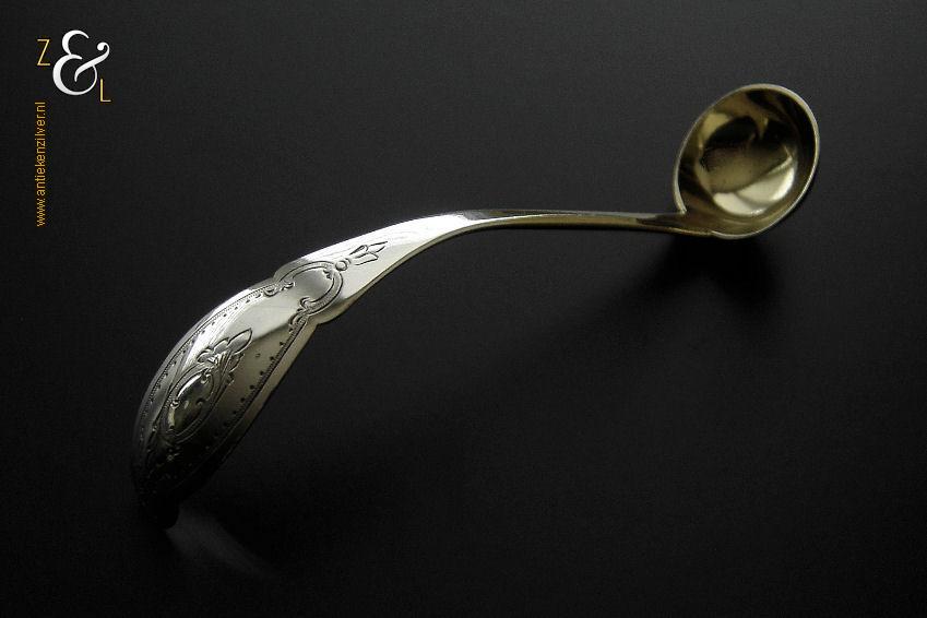De zilversmeden uit de Biedermeier tijd konden al hun vakmanschap zoals, drijven, zagen, graveren, gieten, solderen etc. kwijt bij het maken van het schepwerk, deze visdienschep is daar een goed voorbeeld van.