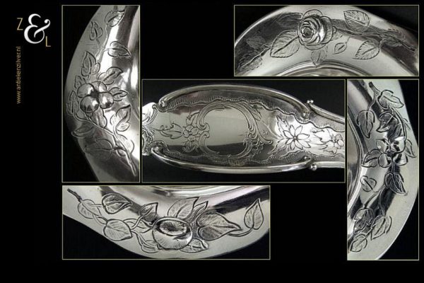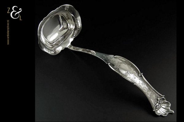 Soepdienlepel gemaakt in Rotterdam door Pieter Zöllner & Willem Nicolaas Beijder (meesterteken Z&B boven XX in vierkant) in het jaar 1856 (jaarletter W). De zilveren Biedermeier soepdienlepel heeft een gegoten steel en gedreven lepelbak die voorzien is van gegraveerde bloemmotieven, rocailles, c-vormige voluten en drie hoog gedreven verschillende soorten bloemen op een gegranuleerde ondergrond. De soepdienlepel weegt 235 gram en is 34 cm lang. De lepelbak is 12.4 cm lang bij 10 cm breed.