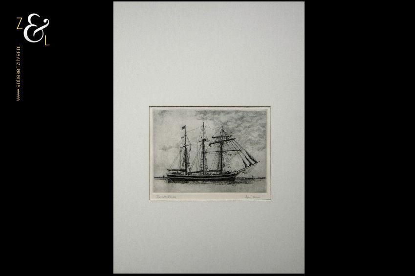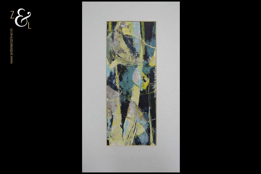 Deze op de hand ingekleurde en met bladgoud bewerkte ets / kleurenets heeft de titel “Echo van het verleden” en is gemaakt door Gea Karhof. De ets / kleurenets is in potlood linksonder gedateerd en gesigneerd: Gea Karhof 1993, rechtsonder staat de oplage: 35/75 en midden onder staat de titel: echo van het verleden. De ets / kleurenets is aan de buitenzijde gemeten 79.5 cm lang bij 60 cm breed, de ets zelf is 74.2 cm lang bij 51.8 cm breed.