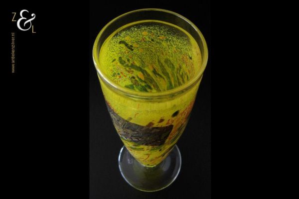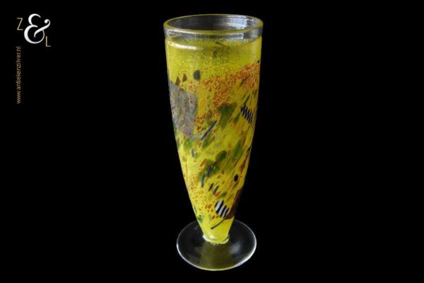 Deze vaas is gemaakt in Småland Zweden bij de wereldberoemde glasfabriek Kosta Boda. De serie Satellite die deel uitmaakt van de zogenaamde “Artist Collection” is in 1992 uitgebracht en ontworpen door de Zweedse kunstenaar Bertil Vallien. De onderzijde van de vaas is met een graveerpen gesigneerd: Kosta Boda, Artist Coll, B. Vallien, 49535. De vaas Satellite weegt 1000 gram heeft een diameter van 9.5 cm en is 27.5 cm hoog. De voet heeft een diameter van 10 cm.