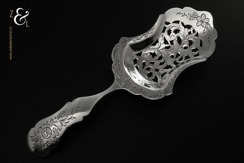 Dit stel belegvorken / stel zuurvorken is gemaakt in Schoonhoven door Pieter Coenraad Burghoorn (meesterteken PC boven B ster in vierkant) in het jaar 1889 (jaarletter E). De zilveren Biedermeier belegvorken / zuurvorken hebben getordeerde stelen en gegraveerde en gematteerde handvatten (matteren is een bewerking waarbij de zilversmid het oppervlak van een zilveren voorwerp een matte structuur geeft). De elegante vorken die aan de achterzijde tevens fijntjes gegraveerd zijn wegen 42 gram en zijn 16 cm lang.