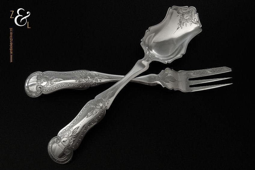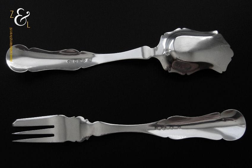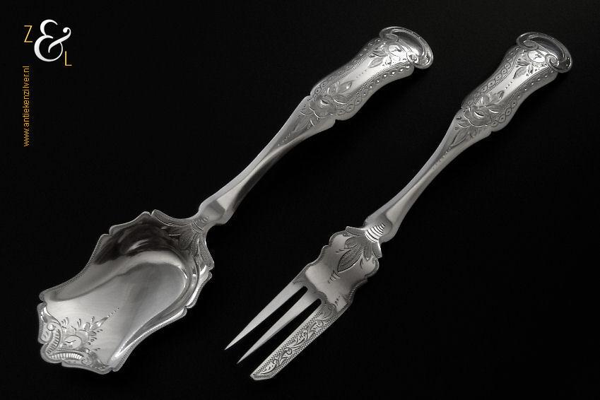 Gembercouvert gemaakt in Voorschoten bij de Firma J.M. van Kempen & Zonen (meesterteken liggend maantje boven VK in vierkant) in het jaar 1877 (jaarletter S). Dit in Biedermeier uitgevoerde zilveren gembercouvert heeft een gravering van bloem- en bladmotieven en c-vormige voluten. Het gembercouvert weegt 62 gram en is 19.3 cm lang.