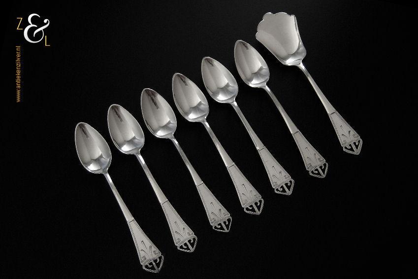 6 Koffielepels / Theelepels + 1 Suikerschep