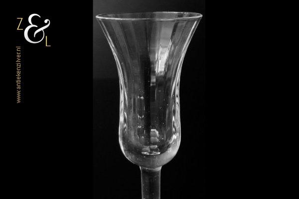 Dit bitterglas* is gemaakt in Nederland aan het einde van de 19e en het begin van de 20e eeuw. Het bitterglas heeft een geribbelde kelk (in de vorm van een tulp) die het licht mooi reflecteert. Het bitterglas weegt 58 gram en is 10.4 cm hoog. De bovenzijde van het glas heeft een diameter van 4.3 cm en de voet heeft een diameter van 4.3 cm.