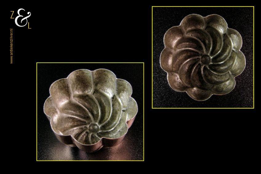 Dit koperen bak- cakevormpje is gemaakt in Nederland en stamt uit het midden van de 19e eeuw. Cakevormpjes van dit kleine formaat werden gebruikt om het gat middenin een tulband op te vullen. Het cakevormpje is 3.6 cm hoog heeft een diameter van 6.5 cm en het weegt 33 gram.