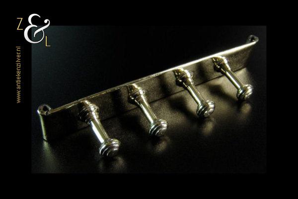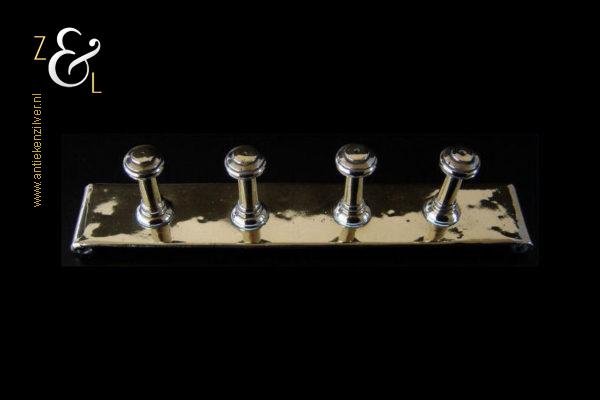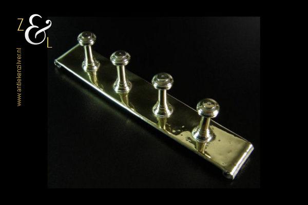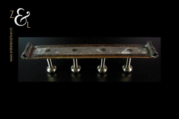 Dit kapstokje / wandrekje is gemaakt in Nederland in de laat 18e vroeg 19e eeuw. Het op de hand gemaakte kapstokje / wandrekje is uitgevoerd met vier massief gegoten messing knoppen van 4.2 cm lang die vastgeklonken zijn op een ijzeren grondplaat die bekleed is met latoen of latoenkoper (dun messing of koper met veerkracht in de vorm van folie). Het kapstokje / wandrekje weegt 355 gram is 22.5 cm lang bij 3.8 cm breed en 4.5 cm hoog.