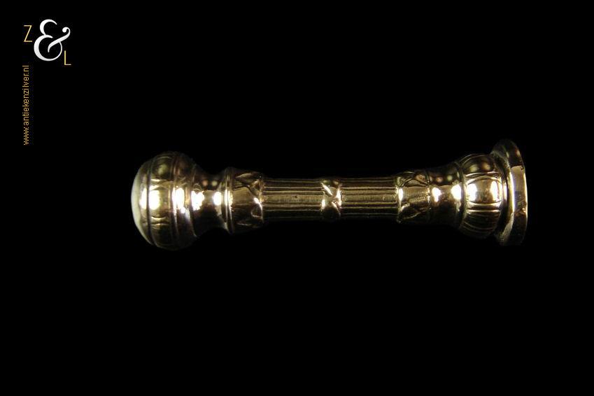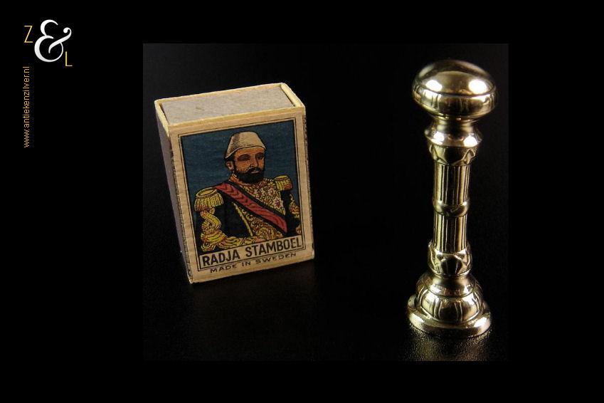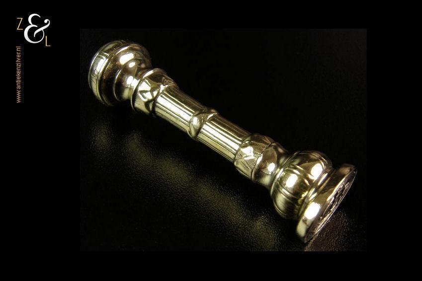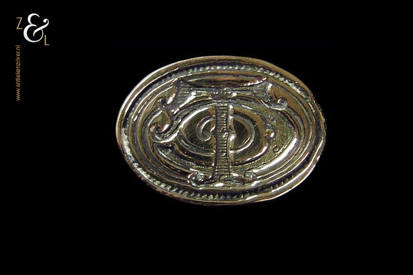 Dit massief gegoten bronzen Nederlandse lakzegelstempel stamt uit het eind van de 18e en het begin van de 19e eeuw. Het lakzegelstempel waarop het monogram TC nog goed leesbaar is weegt 84 gram en is 7.7 cm lang.