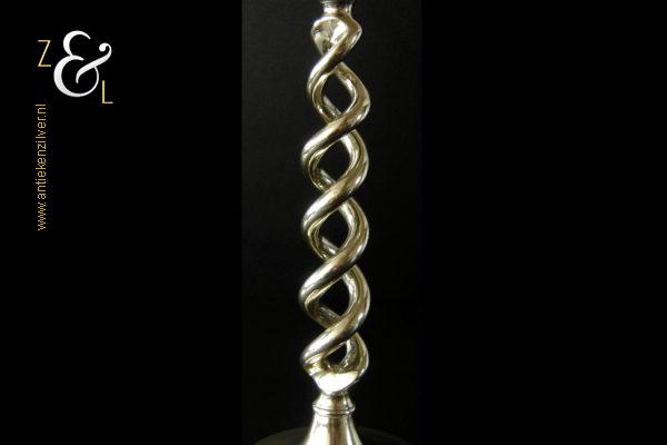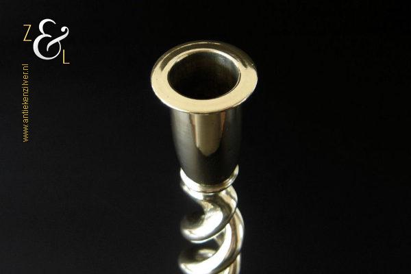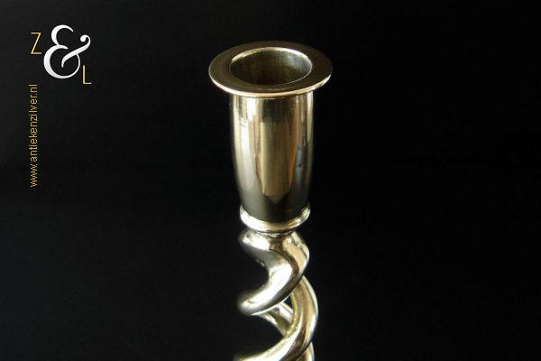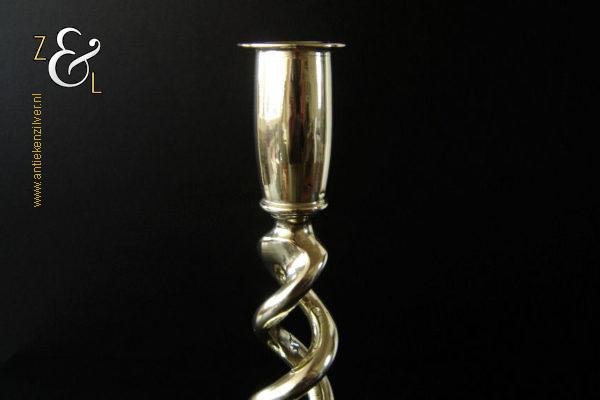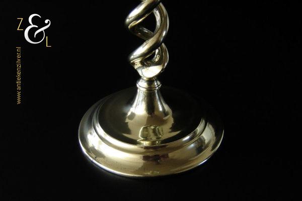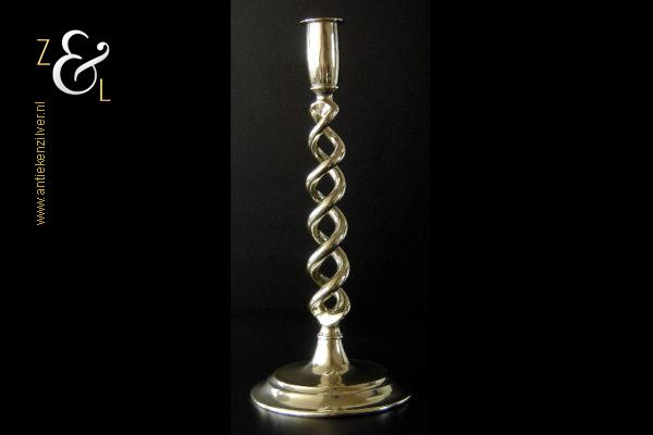 Deze messing open dubbel gedraaide kandelaar is gemaakt in Engeland aan het einde van de 19e eeuw / begin 20e eeuw. De kandelaar die in Nederland bekend staat onder de naam: open dubbel gedraaid of open twist kandelaar of in het Engels: open twist, double twisted of open Barley twist candlestick is 29 cm hoog heeft een ronde voet met een diameter van 13 cm en weegt 881 gram. De kandelaar is geschikt voor kaarsen met een diameter van 2.2 cm.