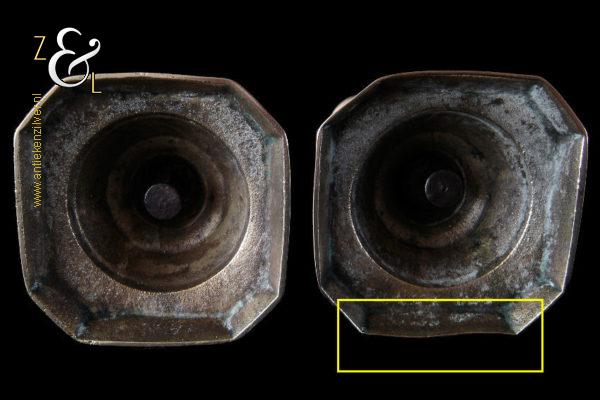 De kandelaars zijn op de voet gestempeld met: The Diamond Prince en op de tegenover liggende zijde met: English Rd 385856 dit is het Engelse design nummer dat op 18 januari 1902 geregistreerd werd. De kandelaars zijn echte “verzamelobjecten” maar het belangrijkste is dat men ze nog steeds gewoon kan gebruiken!