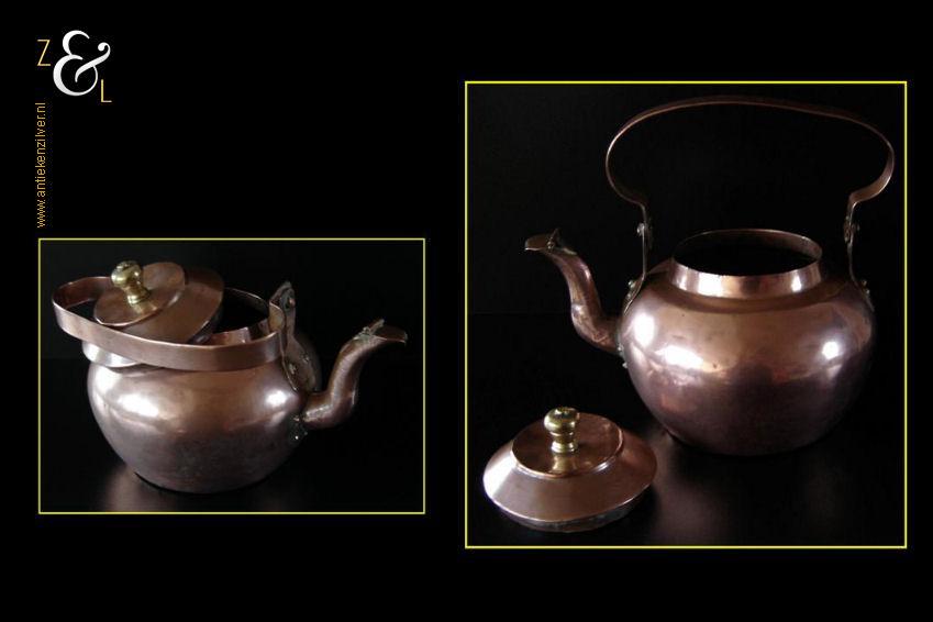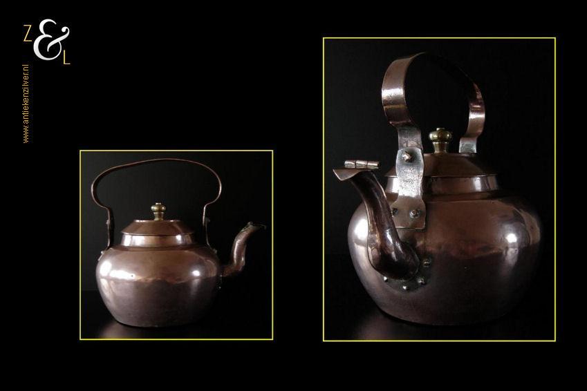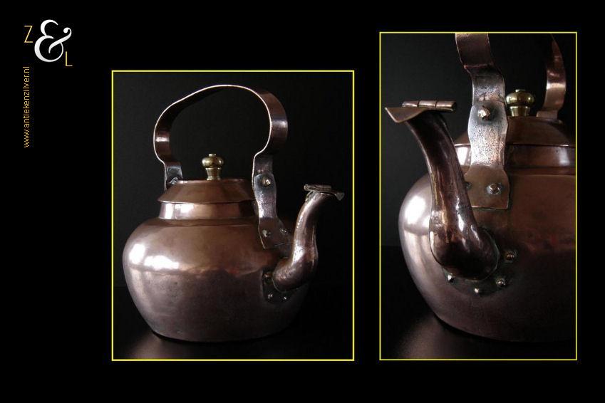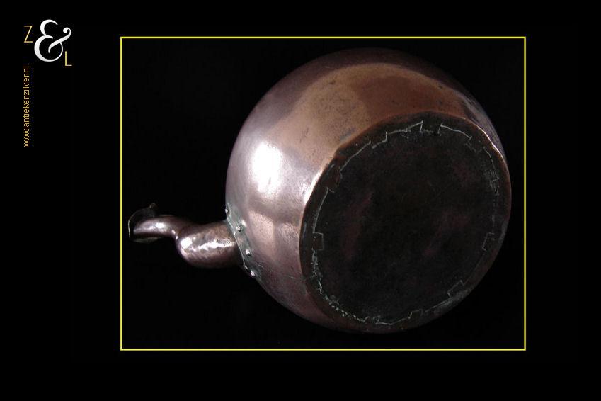 Deze Hollandse appelketel stamt uit de eerste helft van de negentiende eeuw. De ketel is gemaakt van koper heeft een messing knop en is van binnen vertind. De bodem en zijkant hebben een zwaluwstaart verbinding en het hengsel en tuit zijn met nagels vastgezet. De ketel weegt 1706 gram meet met het hengsel omhoog 30 cm, is 33 cm lang en 24 cm breed.