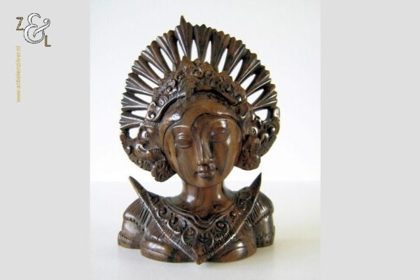 Dit sculptuur / buste / borstbeeld stelt Dewi Sri, Shridevi of Nyai Pohaci Sanghyang Asri, de Javaanse, Sundanese en Balinese hindoeïstische godin van rijst en vruchtbaarheid voor. Zij wordt nog steeds wijdverbreid aanbeden op de eilanden Java, Bali en Lombok Indonesië. Ze wordt vaak geassocieerd of gelijkgesteld met de hindoeïstische godin Lakshmi, de shakti (gemalin) van Vishnu.