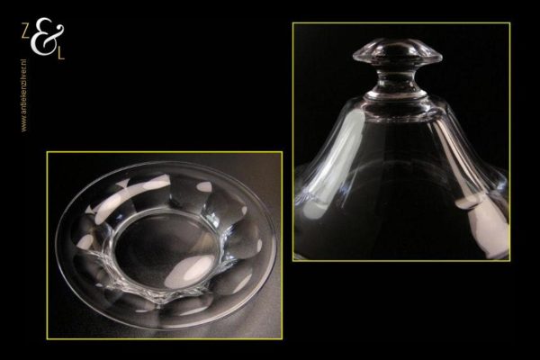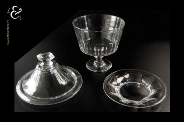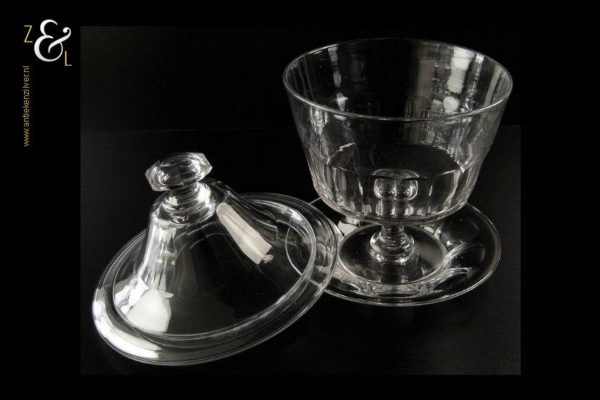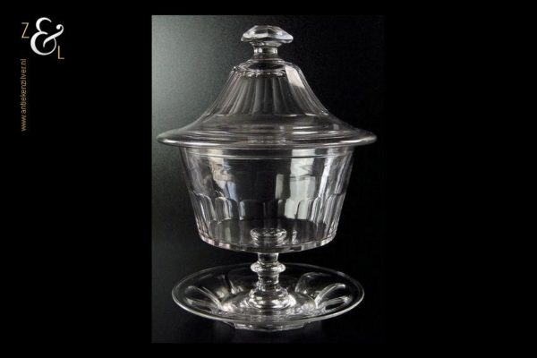 Deze royale Hollandse kristallen bonbonnière / drageoir / gembercoupe met schotel stamt uit de 2e helft van de 19e eeuw. De mondgeblazen, handgeslepen en gepolijste bonbonnière / drageoir / gembercoupe weegt 1570 gram heeft een hoogte van 26.5 cm en een diameter van 20 cm. De bonbonnière / drageoir / gembercoupe kan door zijn grote formaat ook héél goed gebruikt worden om koekjes uit te presenteren.