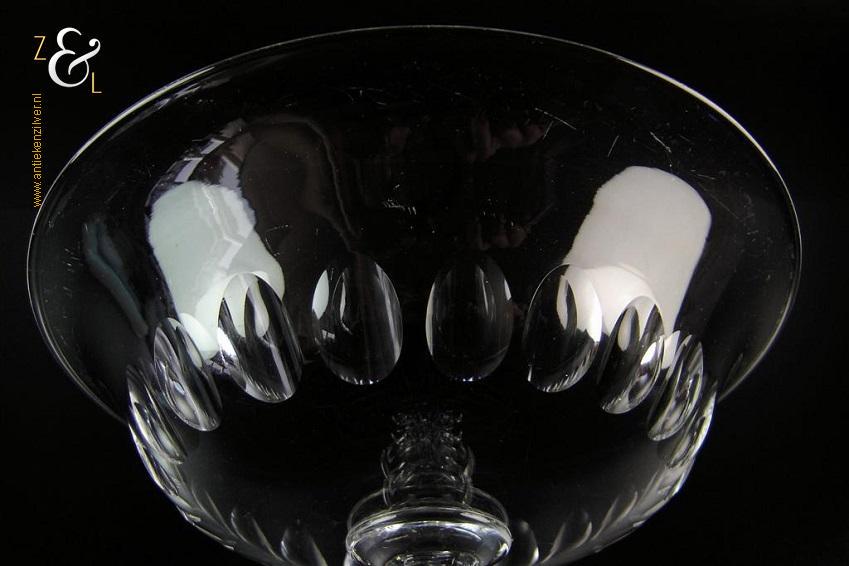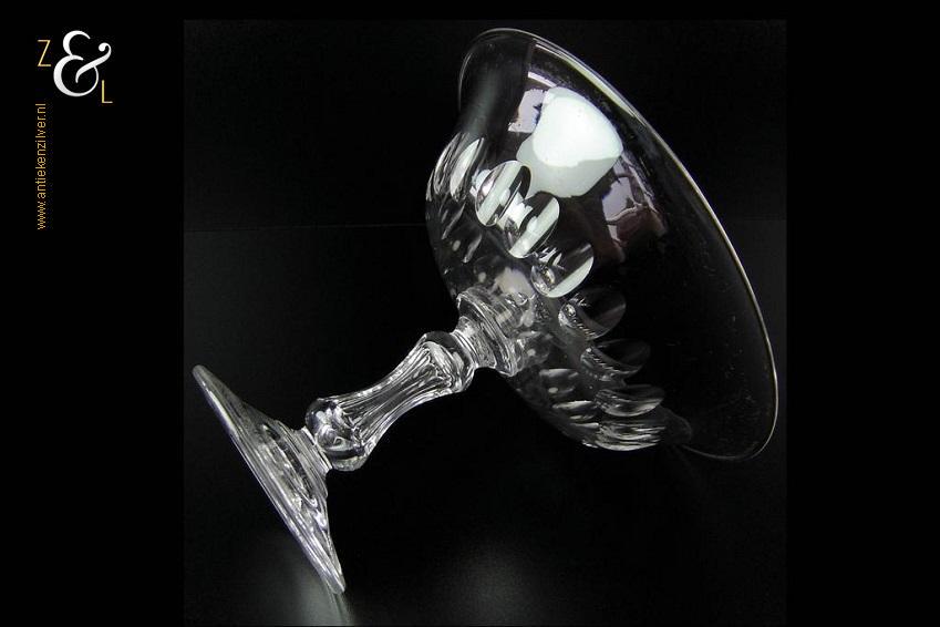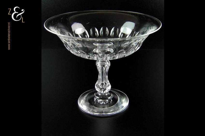 Deze mooie Hollandse kristallen biedermeier fruitschaal is 18.5 cm hoog heeft een diameter van 23 cm en weegt 1275 gram. De mondgeblazen en op de hand met olijf geslepen fruitschaal heeft een prachtig gevormde steel en is in zeer goede staat, de lichte gebruikssporen (krasjes) zijn inherent aan kristal van deze leeftijd.