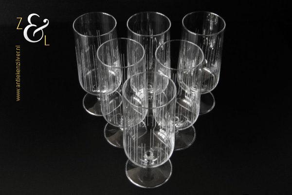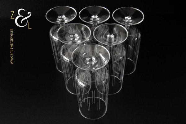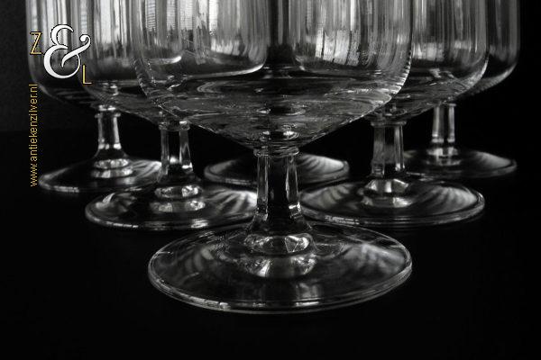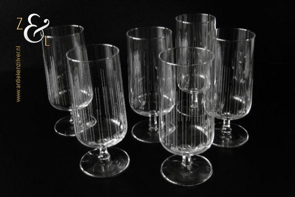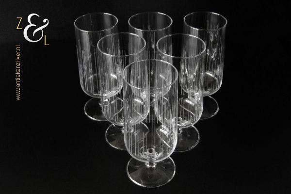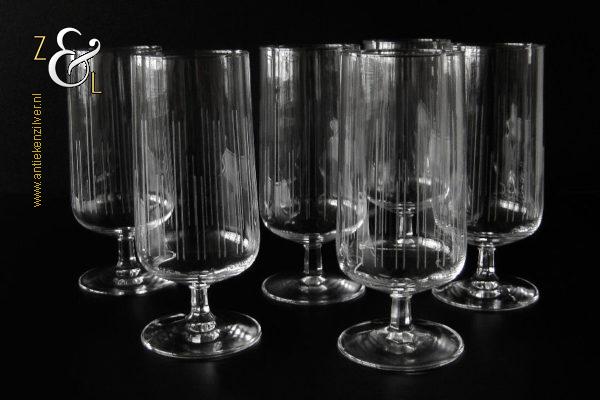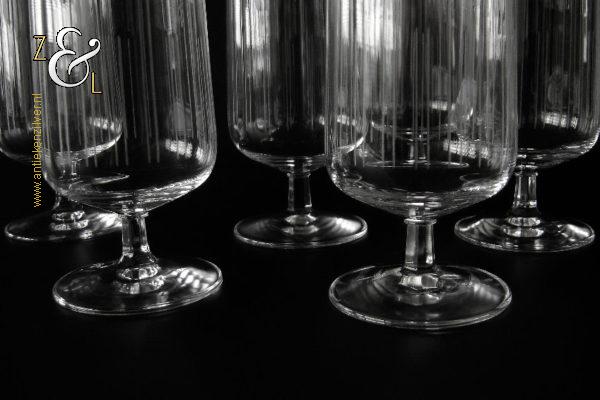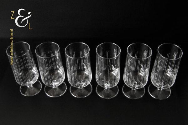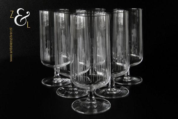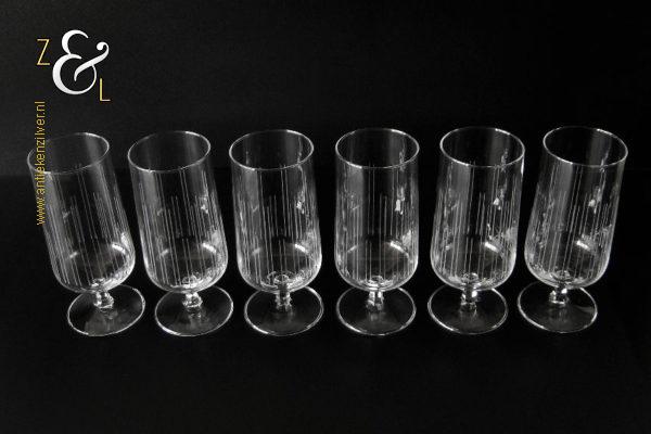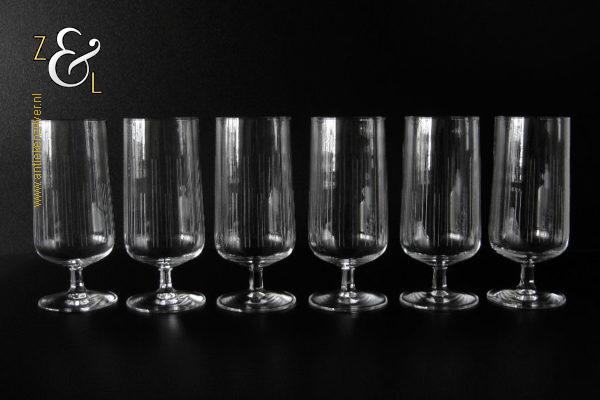 Deze zes bierglazen model Atlanta zijn een ontwerp uit 1965-1966 van de wereldberoemde Nederlandse glasontwerper Andries Dirk Copier en uitgevoerd bij de Glasfabriek Leerdam. De in zestiger jaren stijl en delicate in helder kristal vervaardigde bierglazen zijn handgeslepen met afwisselend dubbele verticale lange en korte lijnen. De zes bierglazen wegen 652 gram en zijn 15.9 cm hoog. De bovenzijde van de glazen hebben een diameter van 6.2 cm en de voeten hebben een diameter van 6.7 cm. Het glasservies Atlanta is op ambachtelijke wijze op de hand in een vorm mondgeblazen, hierdoor kunnen er kleine imperfecties optreden en hebben de glazen onderling een klein verschil in gewicht.