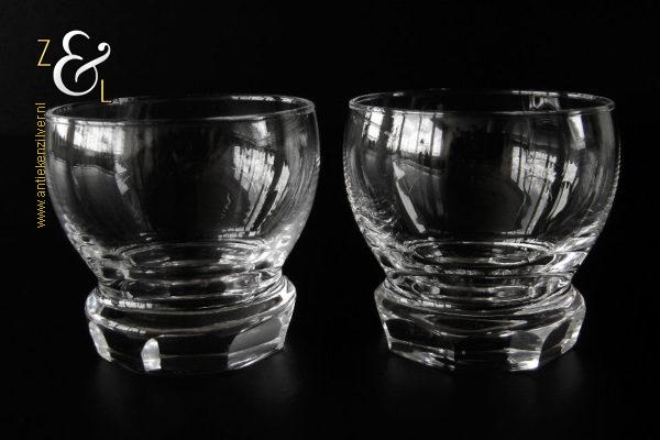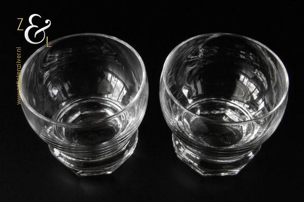Dit stel bitterglazen* model Rumba is een ontwerp uit 1948 van de wereldberoemde Nederlandse glasontwerper Andries Dirk Copier en uitgevoerd bij de Glasfabriek Leerdam. De in Art Deco stijl en in helder kristal vervaardigde bitterglazen hebben een achtkantige voet met lenzen. Het stel bitterglazen weegt 177 gram heeft een diameter van 5.7 cm en is 5.3 cm hoog. Het glasservies Rumba is op ambachtelijke wijze op de hand in een vorm mondgeblazen, hierdoor kunnen er kleine imperfecties optreden en hebben de glazen onderling een klein verschil in gewicht.