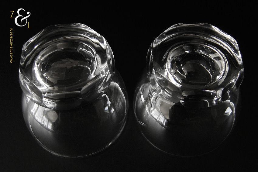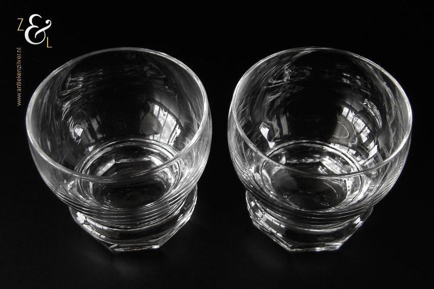 Dit stel bitterglazen* model Rumba is een ontwerp uit 1948 van de wereldberoemde Nederlandse glasontwerper Andries Dirk Copier en uitgevoerd bij de Glasfabriek Leerdam. De in Art Deco stijl en in helder kristal vervaardigde bitterglazen hebben een achtkantige voet met lenzen. Het stel bitterglazen weegt 177 gram heeft een diameter van 5.7 cm en is 5.3 cm hoog. Het glasservies Rumba is op ambachtelijke wijze op de hand in een vorm mondgeblazen, hierdoor kunnen er kleine imperfecties optreden en hebben de glazen onderling een klein verschil in gewicht.