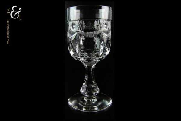 Dit is heel bijzonder! Kristallen Bokaal ontworpen door Willem Jacob Rozendaal. Rozendaal ontwierp de serviezen Elegance en Ambassador al in 1936 voor de kristal- en glasfabriek “De Kristalunie” waar hij van 1928 tot 1937 werkzaam was. De serviezen Elegance en Ambassador werden in 1960 voornamelijk voor de export in productie genomen. Het bijzondere aan deze bokaal is, zijn afmeting van 24 cm hoog, een voet met een diameter van 12 cm en een gewicht van bijna 1.5 kilo en dat het glas geslepen is naar het ontwerp van het Elegance servies en de stam uitgevoerd is naar het ontwerp van het servies Ambassador. Blijkbaar is deze bokaal ontworpen door W.J. Rozendaal een proef geweest voor het slijpen van het Elegance en Ambassador servies (zie voor afbeeldingen van de Elegance en Ambassador serviezen het boek: ANTIEKWIJZER Kristalunie Maastricht blz. 114). Voorbeelden van de serviezen Elegance en Ambassador zijn tevens in het bezit van het Nationaal Glasmuseum te Leerdam.