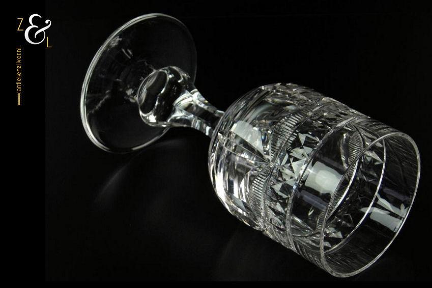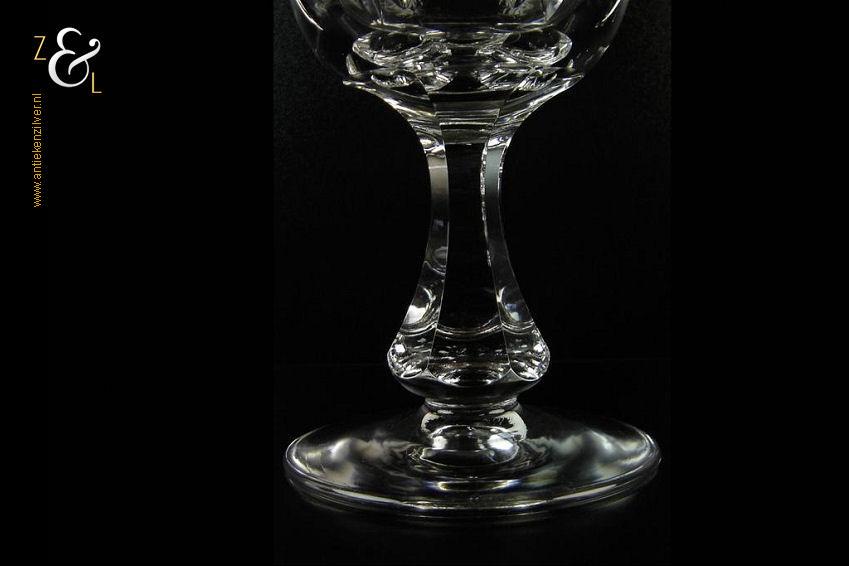 Dit is heel bijzonder! Kristallen Bokaal ontworpen door Willem Jacob Rozendaal. Rozendaal ontwierp de serviezen Elegance en Ambassador al in 1936 voor de kristal- en glasfabriek “De Kristalunie” waar hij van 1928 tot 1937 werkzaam was. De serviezen Elegance en Ambassador werden in 1960 voornamelijk voor de export in productie genomen. Het bijzondere aan deze bokaal is, zijn afmeting van 24 cm hoog, een voet met een diameter van 12 cm en een gewicht van bijna 1.5 kilo en dat het glas geslepen is naar het ontwerp van het Elegance servies en de stam uitgevoerd is naar het ontwerp van het servies Ambassador. Blijkbaar is deze bokaal ontworpen door W.J. Rozendaal een proef geweest voor het slijpen van het Elegance en Ambassador servies (zie voor afbeeldingen van de Elegance en Ambassador serviezen het boek: ANTIEKWIJZER Kristalunie Maastricht blz. 114). Voorbeelden van de serviezen Elegance en Ambassador zijn tevens in het bezit van het Nationaal Glasmuseum te Leerdam.