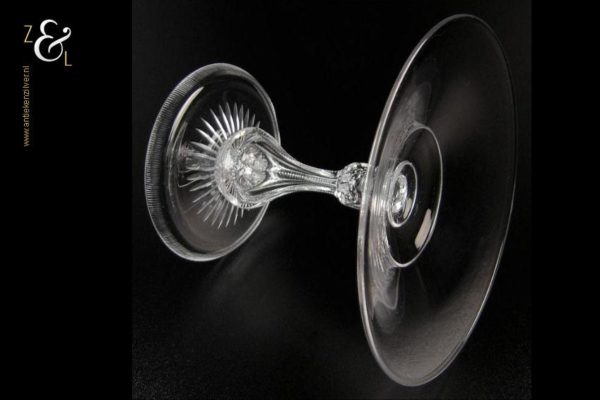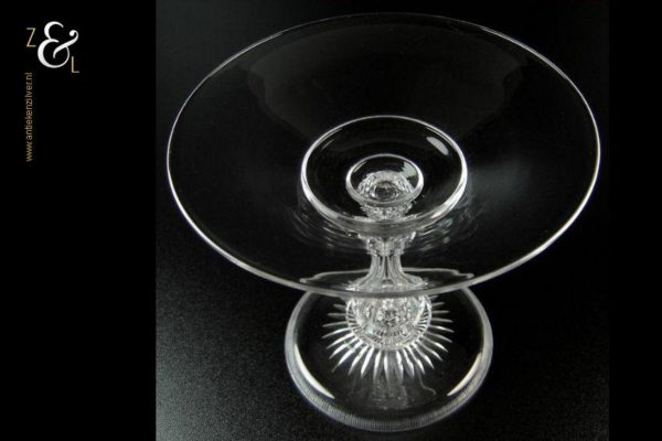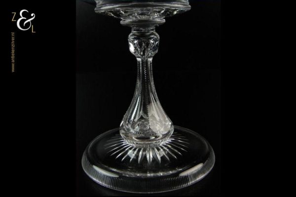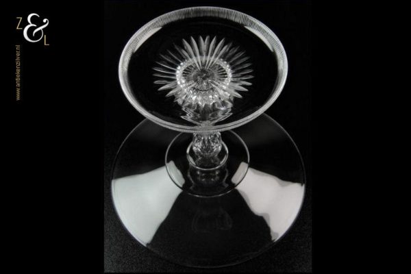 Deze kristallen tazza / bonbonschaal is gemaakt in het plaatsje Baccarat in de regio Lotharingen te Frankrijk bij de gelijknamige kristalfabriek Baccarat. De mondgeblazen handgeslepen en gepolijste tazza / bonbonschaal die uit de 20e eeuw stamt is zowel op de mooi gevormde zeskantige stam als op de holle voet stijlvol geslepen. De tazza / bonbonschaal weegt 350 gram en is 12.6 cm hoog, de diameter van de schaal is 15.3 cm en de diameter van de voet is 9.7 cm.