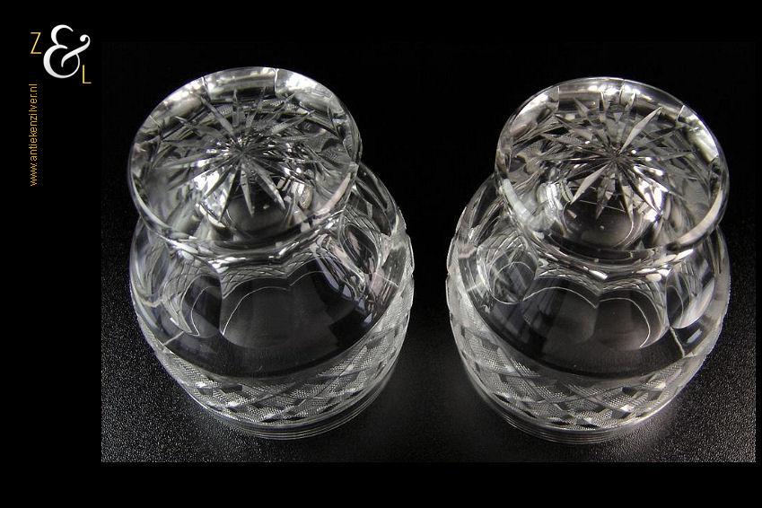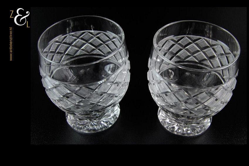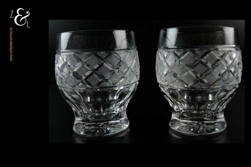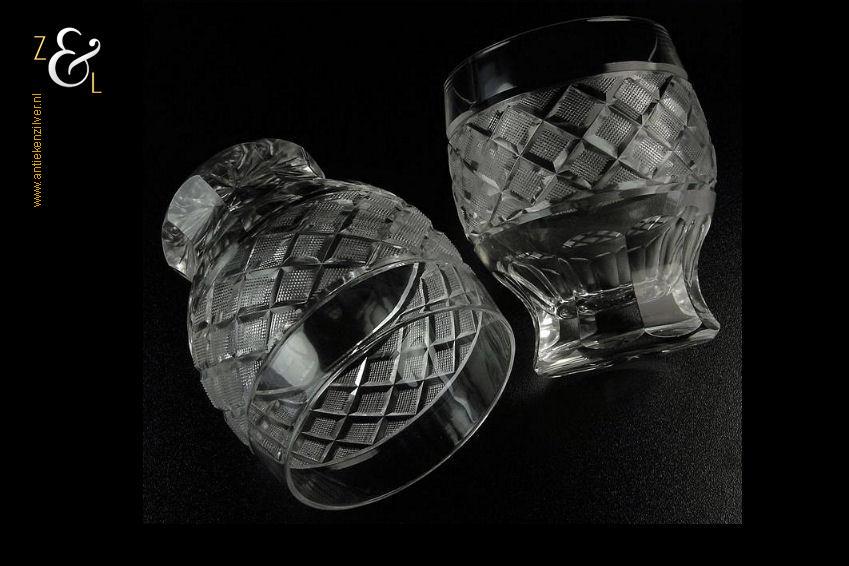 Dit stel Hollandse kristallen whiskey- whiskyglazen is gemaakt in de tweede helft van de 19e eeuw