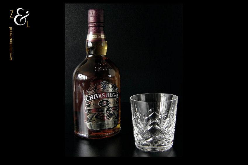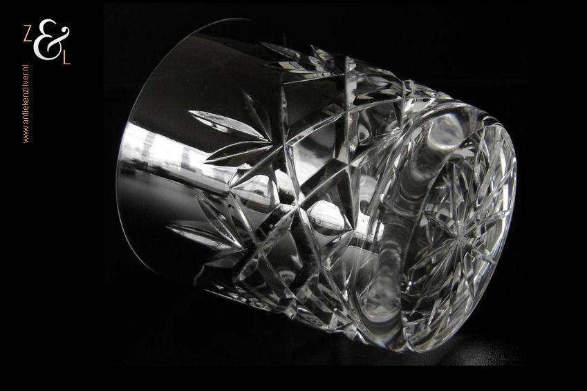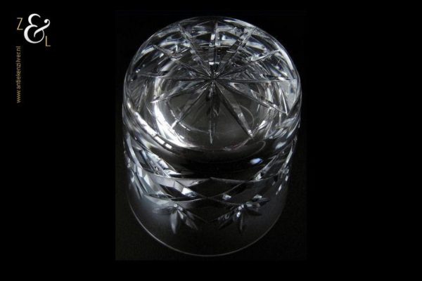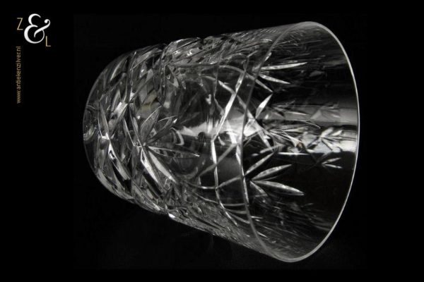 Dit kristallen whiskey- whiskyglas is gemaakt in de 20e eeuw (tussen 1955 en 1980) bij de glasblazerij van de Edinburgh Crystal Factory, Eastfield, Penicuik, Schotland. De kristalslijpers van de Edinburgh Crystal Factory waren beroemd om hun slijpwerk. Het mondgeblazen handgeslepen en gepolijste glas is verticaal ingeslepen met daartussen sterren (Star of Edinburgh) en heeft aan de onderzijde van het glas een geslepen ster. Het glas weegt 289 gram is 8 cm hoog en heeft een diameter van 7.9 cm.