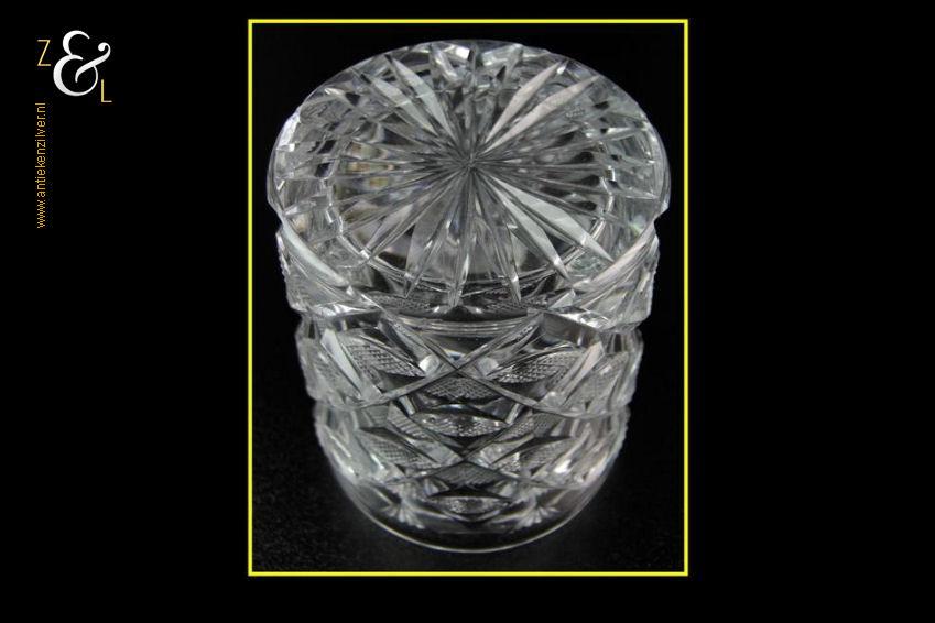 Dit kristallen whiskey- whiskyglas stamt uit de eerste helft van de 19e eeuw en is gemaakt door de kristal- en glasfabriek Vonêche in de Provincie Namen te België. De kristalslijpers van de kristal en glasfabriek Vonêche waren beroemd om hun slijpwerk. Dit mondgeblazen glas is dan ook geheel gepolijst en geslepen met ruiten waarin weer een ellipsvorm met ruiten geslepen is. Aan de onderzijde van het glas is een ster geslepen die tot aan de rand doorloopt. Het glas weegt 345 gram is 8.4 cm hoog en heeft een diameter van 7 cm.
