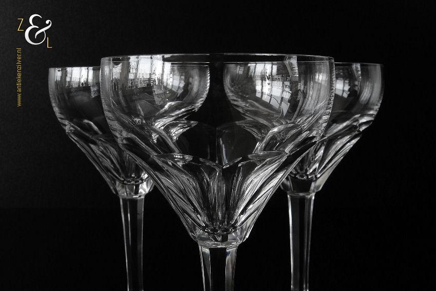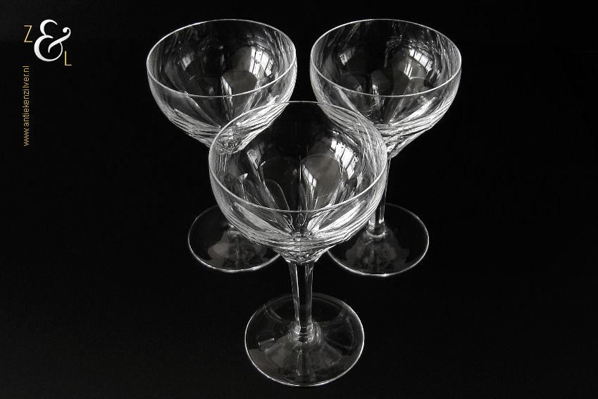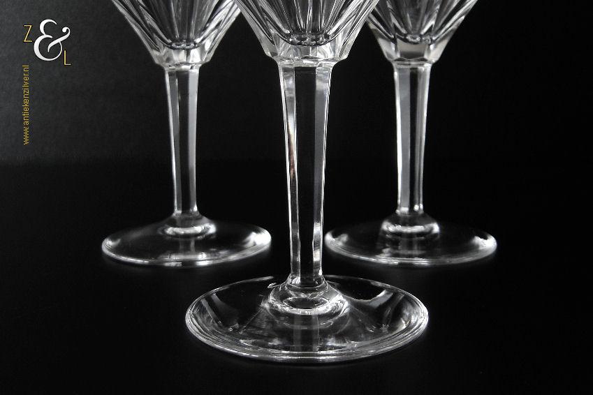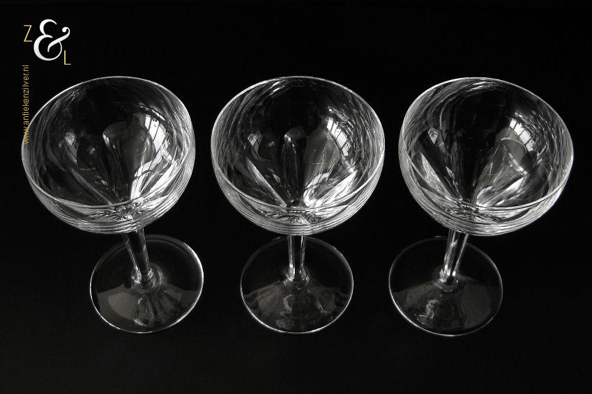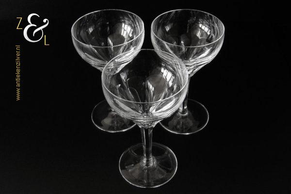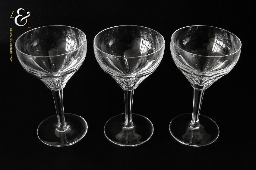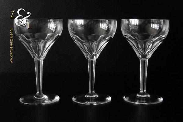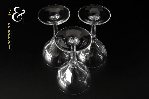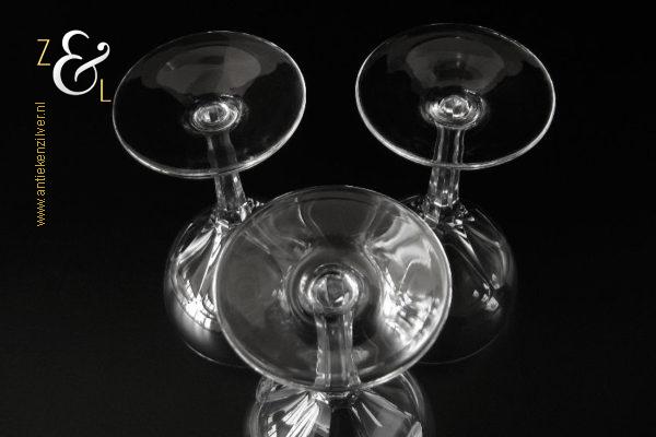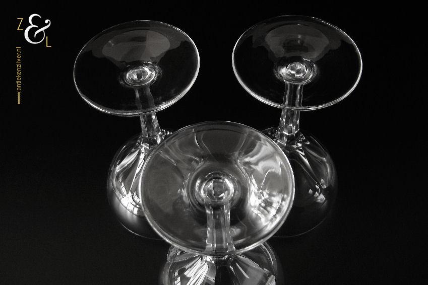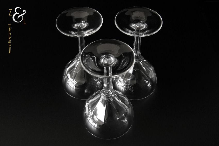 Deze drie wijnglazen model Julien zijn een ontwerp uit 1937 van de Nederlandse glasontwerper Willem Jacob Rozendaal en uitgevoerd bij de Kristal- en glasfabriek Kristalunie Maastricht. De zware in Art Deco stijl en in helder kristal vervaardigde wijnglazen hebben een ronde voet met achtkantige steel en een kelk met acht ronde platribben. De wijnglazen wegen 522 gram en zijn 14.2 cm hoog. De bovenzijde van de glazen hebben een diameter van 8.3 cm en de voet heeft een diameter van 7 cm. Het glasservies Julien is op ambachtelijke wijze op de hand in een vorm mondgeblazen, hierdoor kunnen er kleine imperfecties optreden en hebben de glazen onderling een klein verschil in gewicht. Het glasservies Julien was zéér populair bij de afnemers van de Kristalunie en werd tot aan het begin van de jaren zestig geproduceerd.