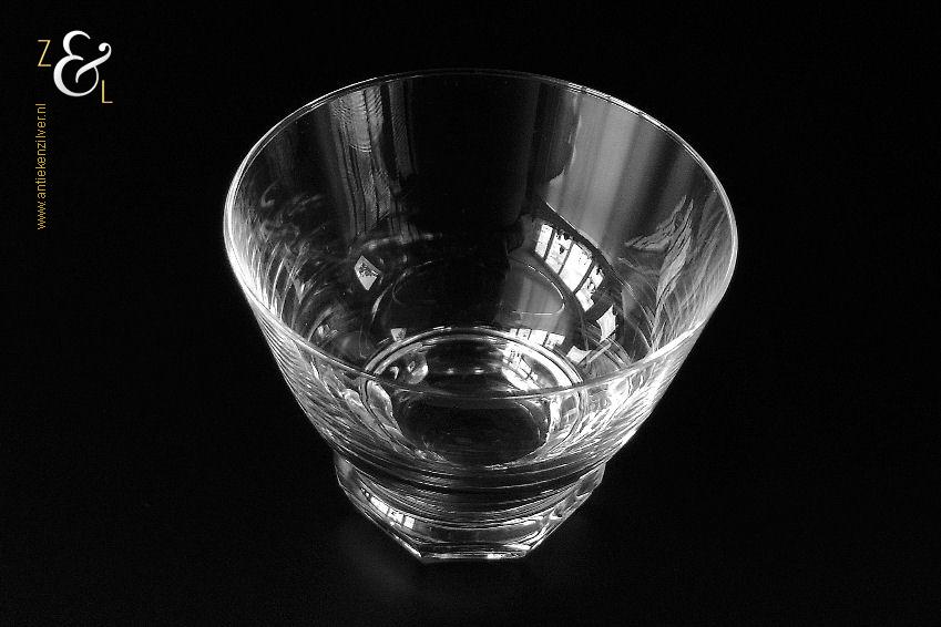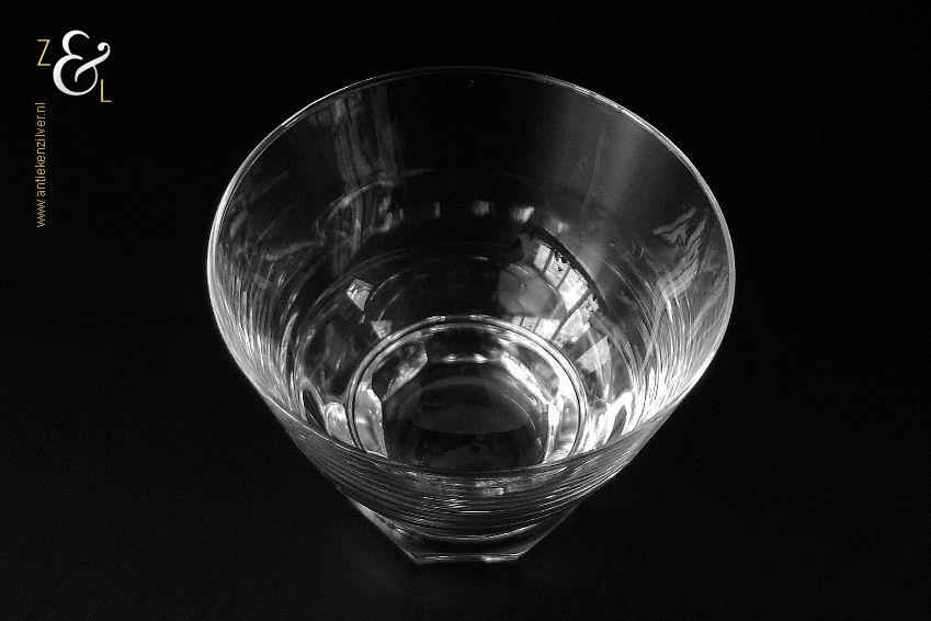 Dit wijnglas model Rumba is een ontwerp uit 1948 van de wereldberoemde Nederlandse glasontwerper Andries Dirk Copier en uitgevoerd bij de Glasfabriek Leerdam. Het in Art Deco stijl en in helder kristal vervaardigde wijnglas heeft een achtkantige voet met lenzen. Het wijnglas weegt 143 gram heeft een diameter van 7.9 cm en is 6.3 cm hoog. Het glasservies Rumba is op ambachtelijke wijze op de hand in een vorm mondgeblazen, hierdoor kunnen er kleine imperfecties optreden en hebben de glazen onderling een klein verschil in gewicht.