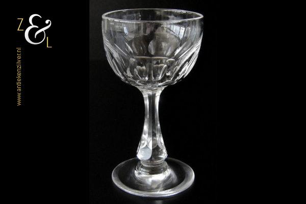 Dit mondgeblazen en geheel op de hand vervaardigde kristallen wijnglas / portglas model Derby is gemaakt bij de Glasfabriek Leerdam en stamt uit het begin van de 20e eeuw. Het handgeslepen en gepolijste glas heeft een zeskantige balustervormige steel en een ronde kelk met dertien olijven. Aan de onderzijde van de voet zit een in de vorm van een lens weggeslepen pontilmerk. Het wijnglas / portglas weegt 161 gram en is 12 cm hoog. De kelk heeft een diameter van 6.6 cm en de voet heeft een diameter van 6.1 cm.